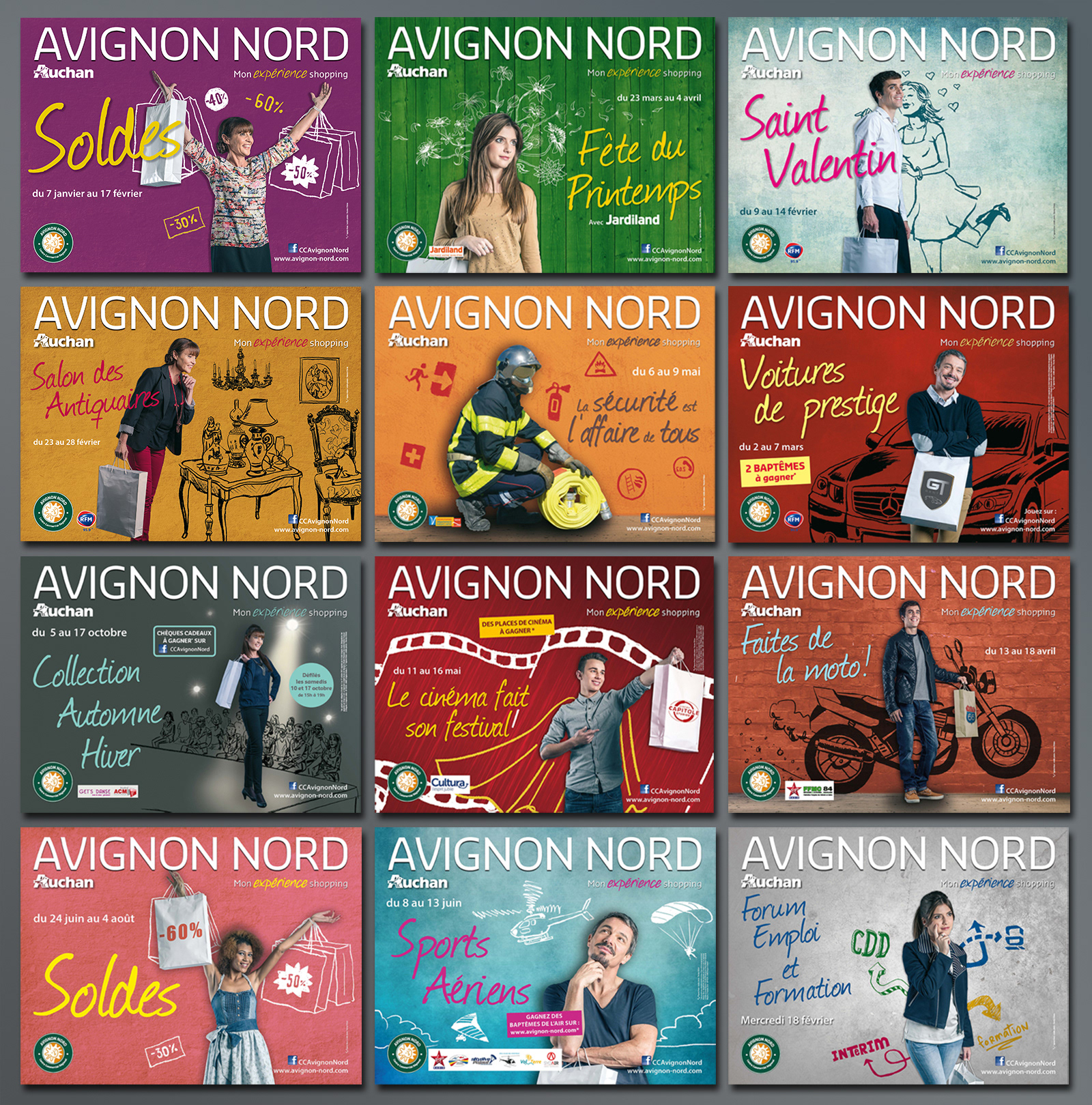 Réalisation campagne d'affichage pour la galerie marchande Avignon Nord pour l'Agence Visae. Illustrations Cyril Erkens.